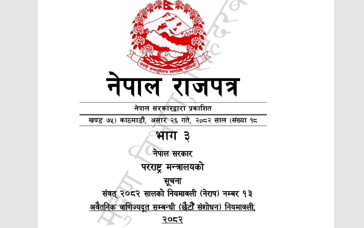 Regulations Amended by Introducing New Qualifications for Appointment of Nepali Honorary Consuls